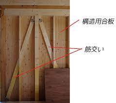 耐力壁になる壁にすじかいが入っていないなら、すじかいを入れるか、構造用合板を張って補強します。