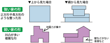 地震に強い建物にするには、平面は正方形か長方形が理想です。