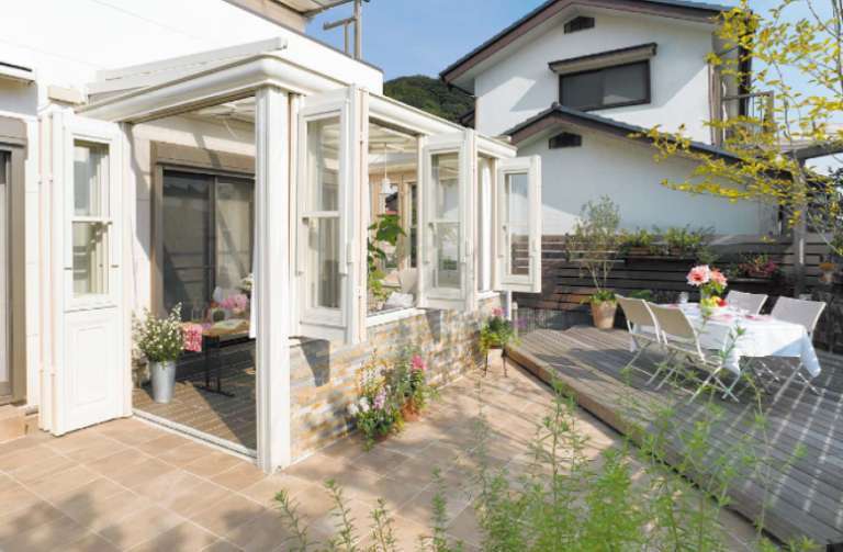 更に、「リビングルームからそのまま継続的につながる延長スペース」として、「おしゃれなテラス囲い」としてのサンルームもあります。